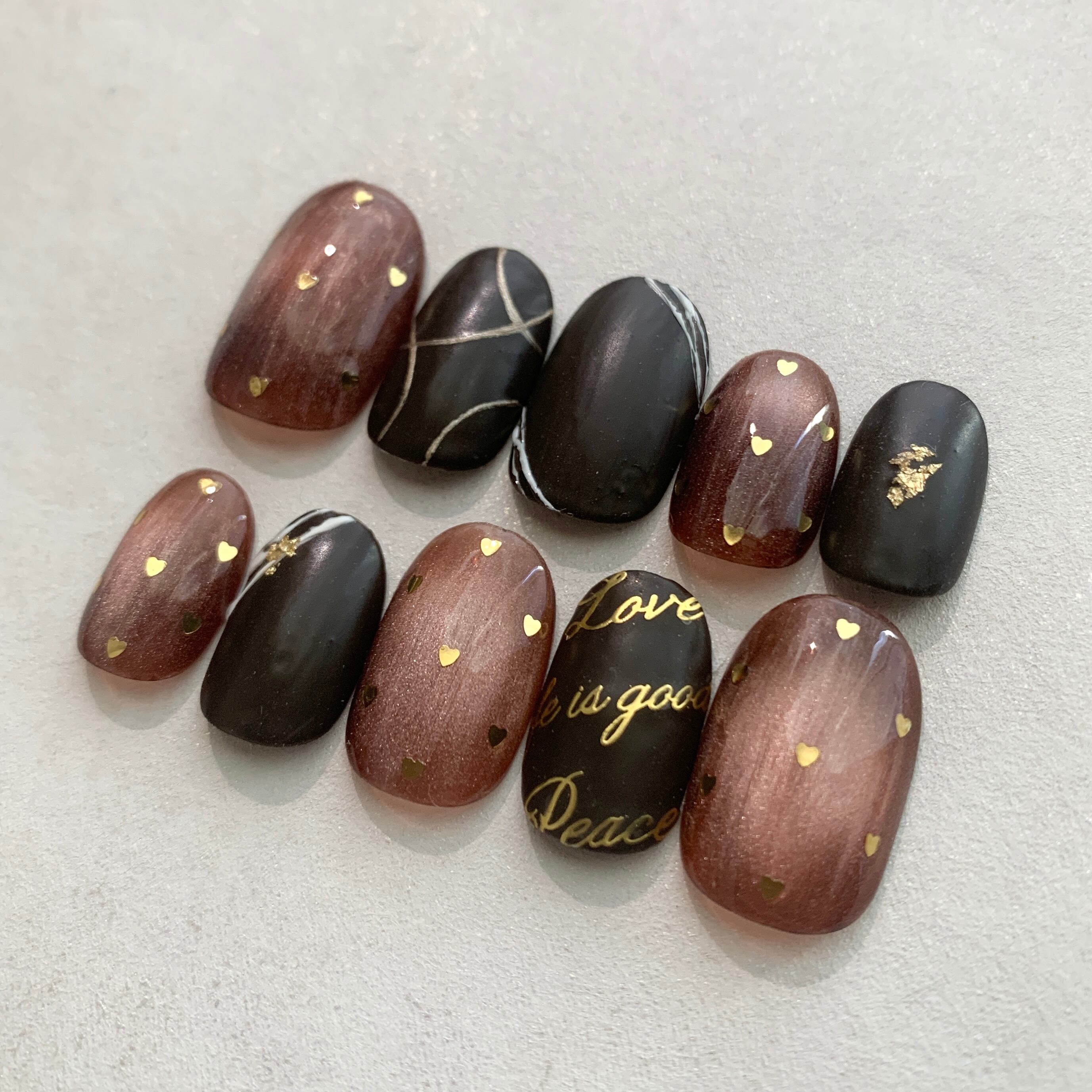 #バレンタインネイル#チョコレートネイル#マグネットネイル#ブラウンカラー#ハートネイル#マットネイル